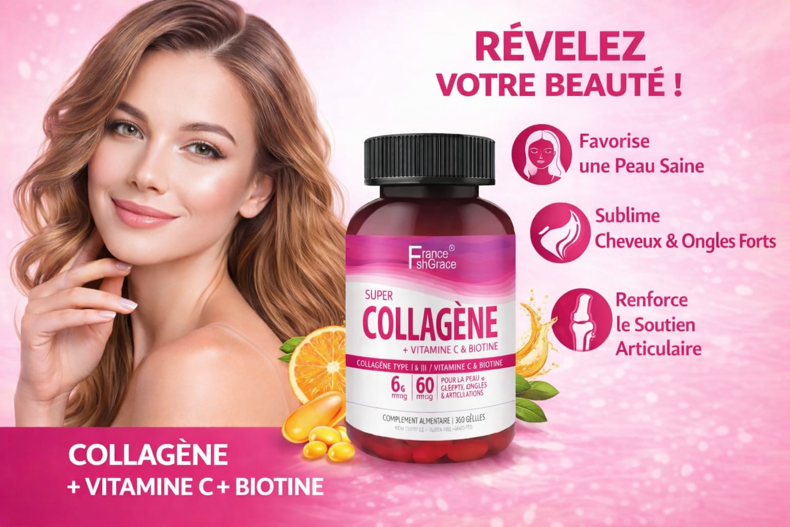 COLLAGENE VITAMINE C ET BIOTIN :360comprimes : 15000 FRCS